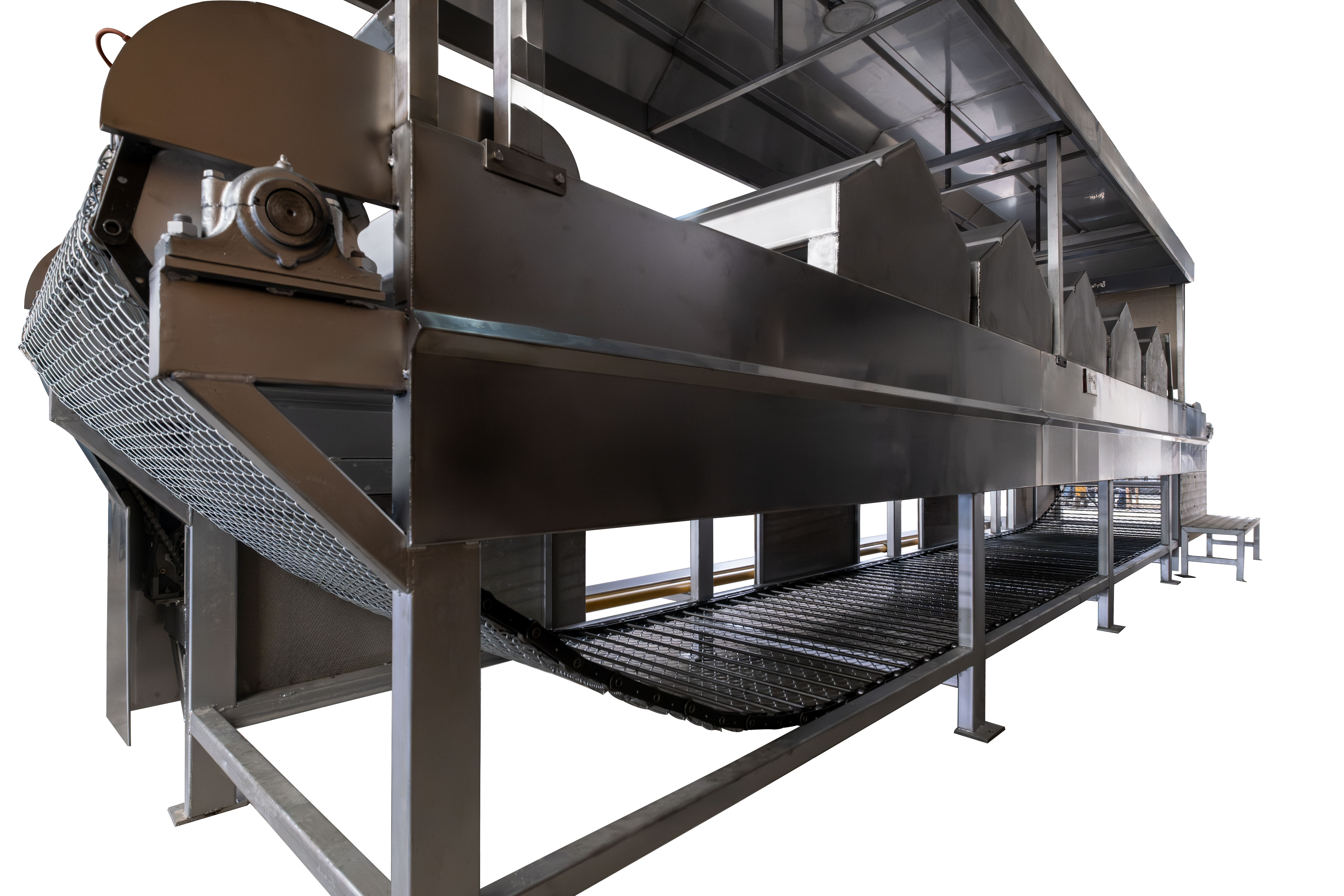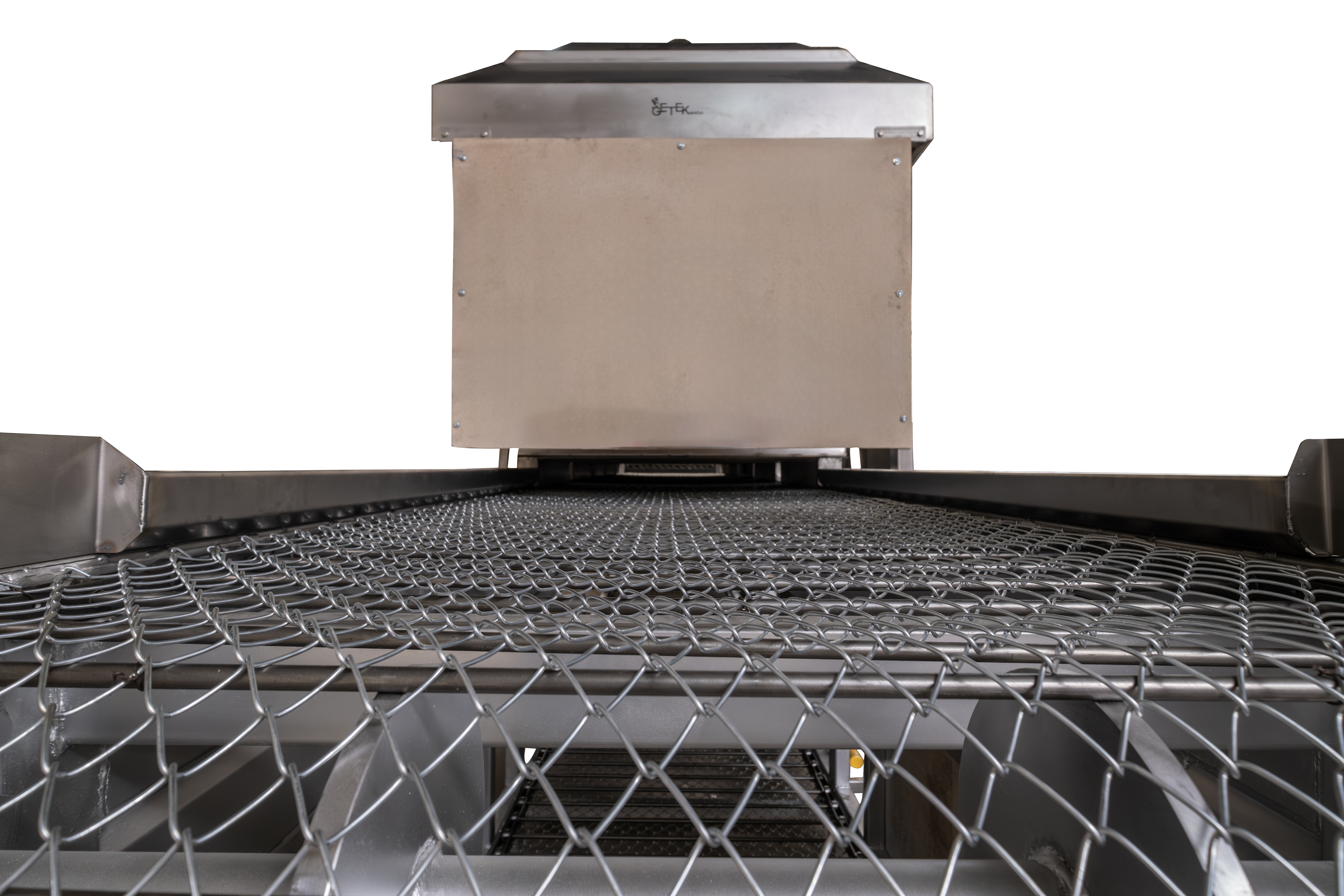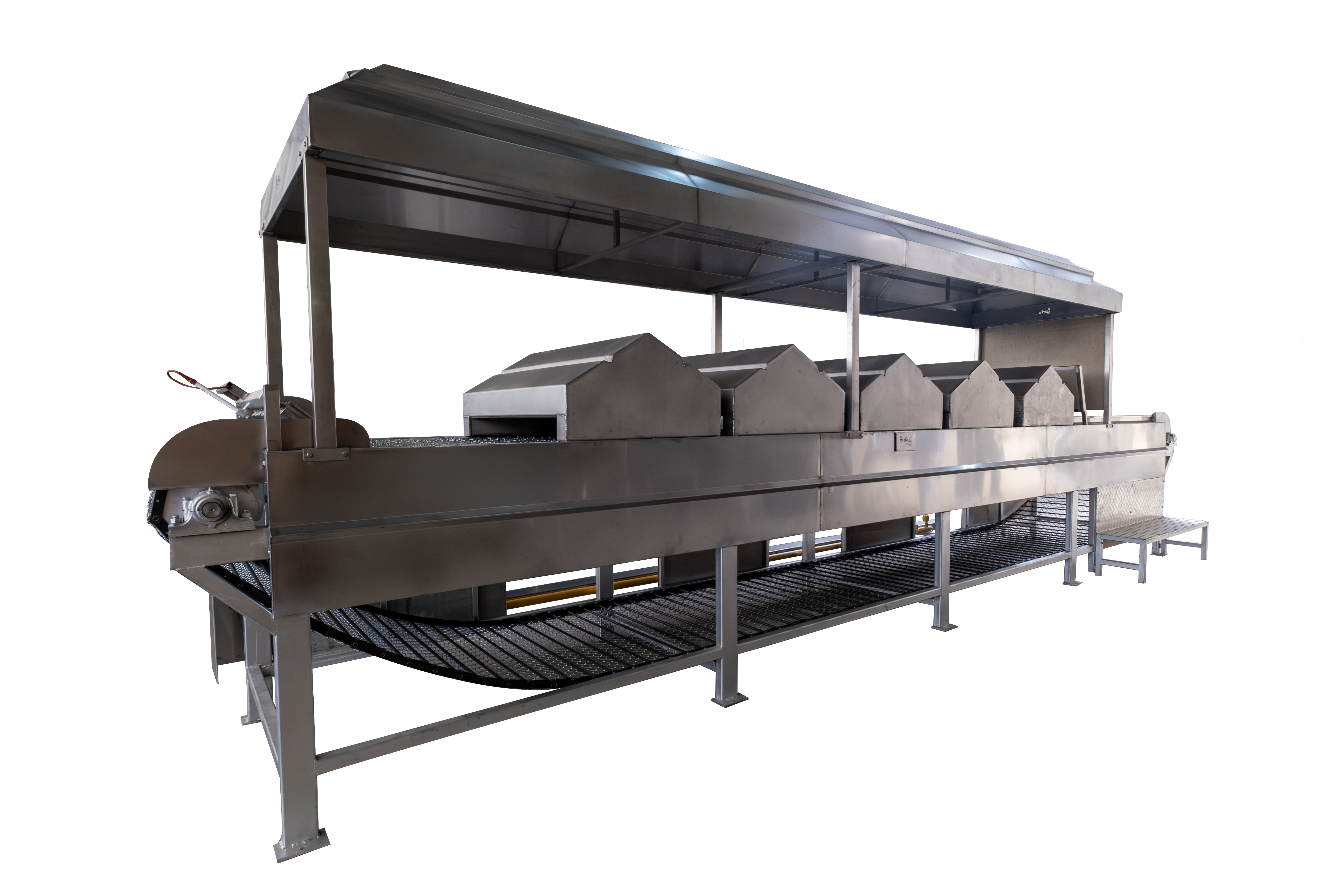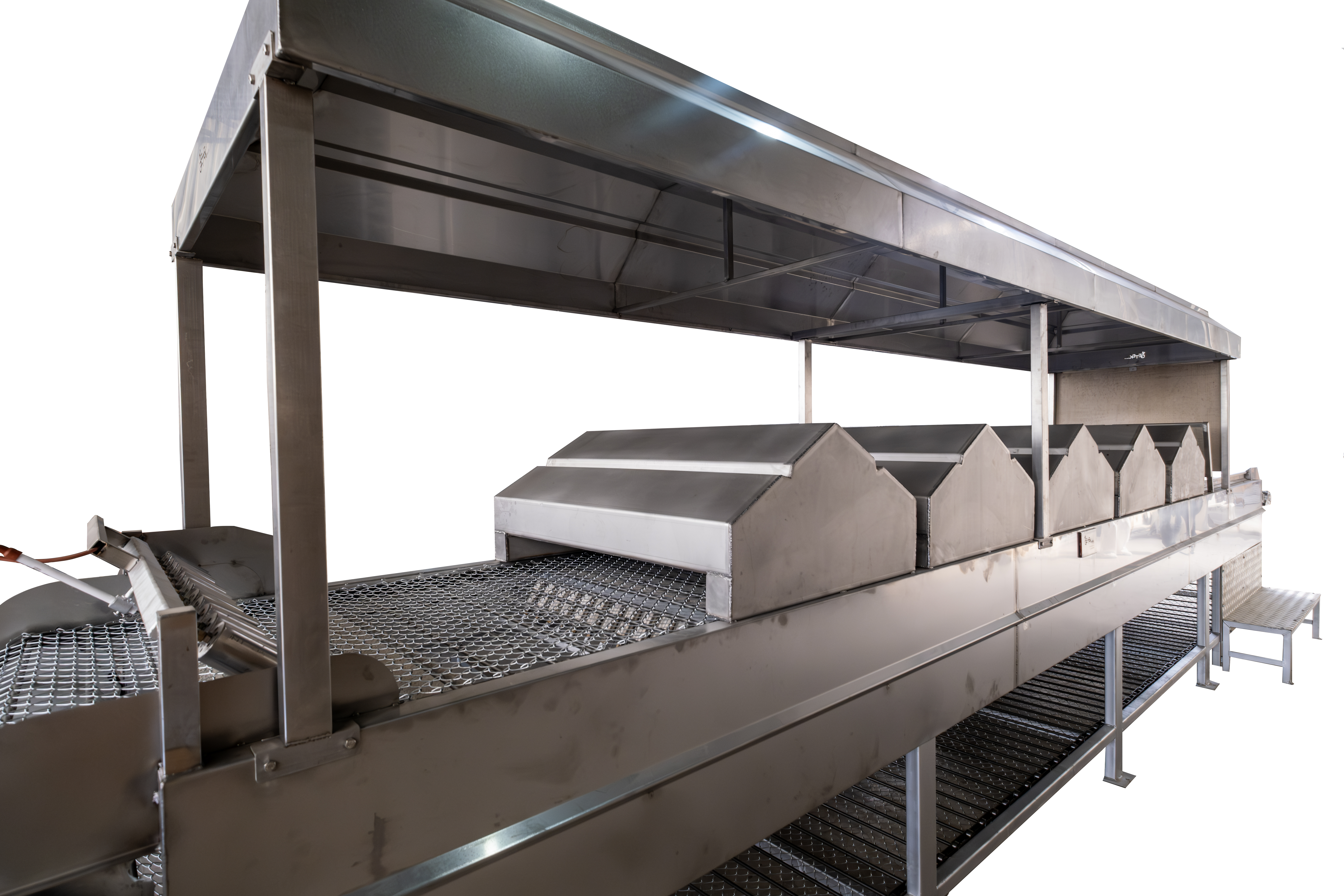 It roasts foods like peppers and eggplants by exposing them to heat on a conveyor belt.